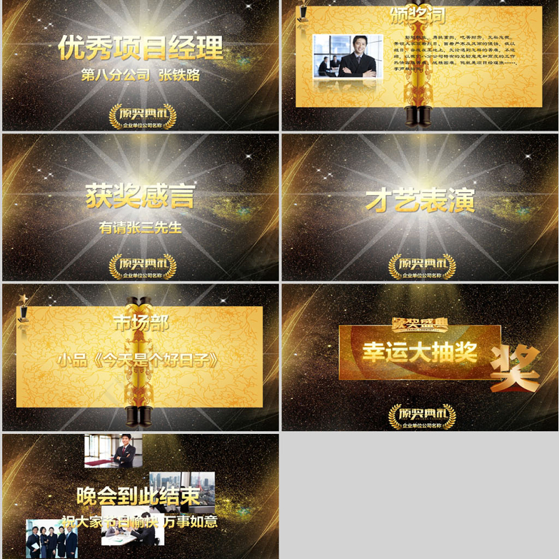 活動(dòng)流程第一項(xiàng):輝煌業(yè)績(jī)第二項(xiàng):頒獎(jiǎng)典禮第三項(xiàng):獲獎(jiǎng)感言第四項(xiàng):才藝展示第五項(xiàng):猜謎抽獎(jiǎng)