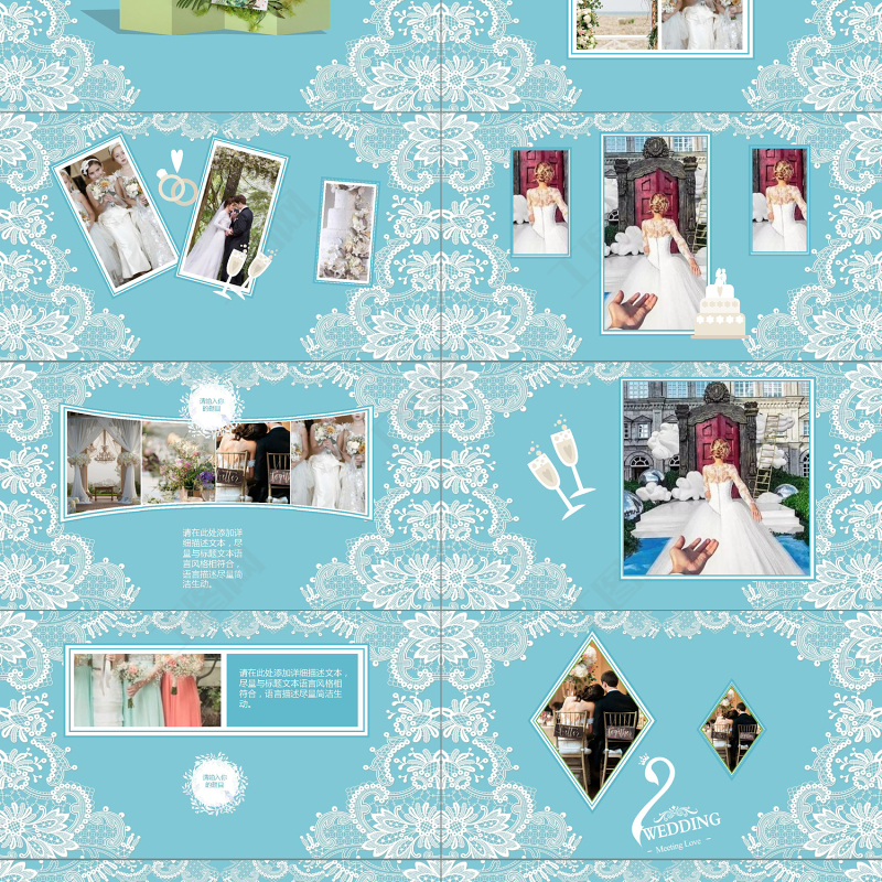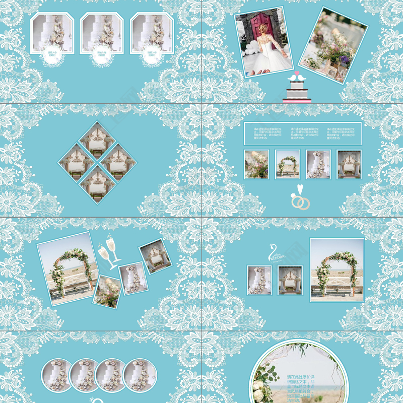ppt模板下載 黨建PPT 花邊 婚禮 清新 模板 藍(lán)色 相冊 PPT Array