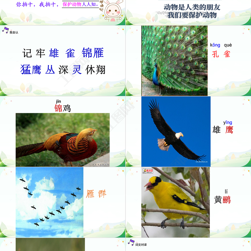 孔 雀錦 雞 雄 鷹雁 群老 虎 熊 貓百 靈黃 鸝我會讀