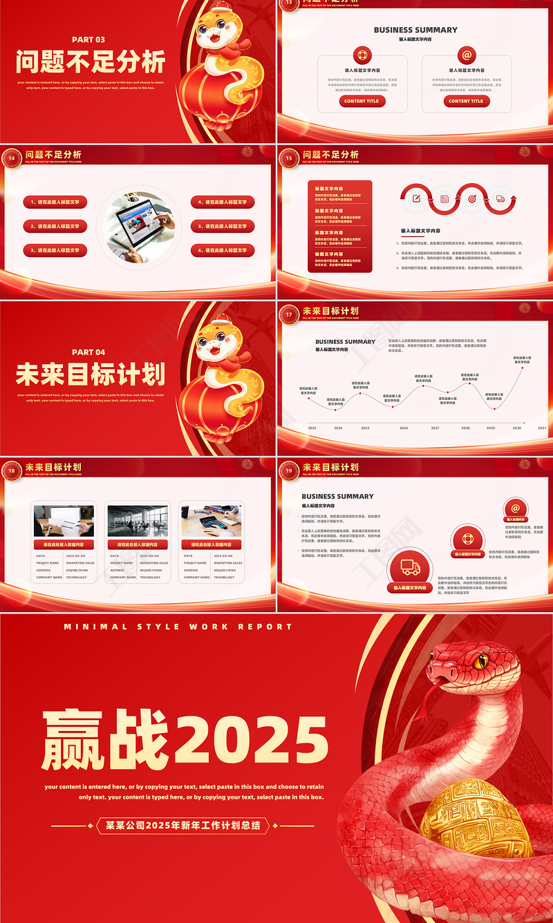 贏戰(zhàn)2025PPT精美喜慶蛇年新年工作計(jì)劃模板 Array