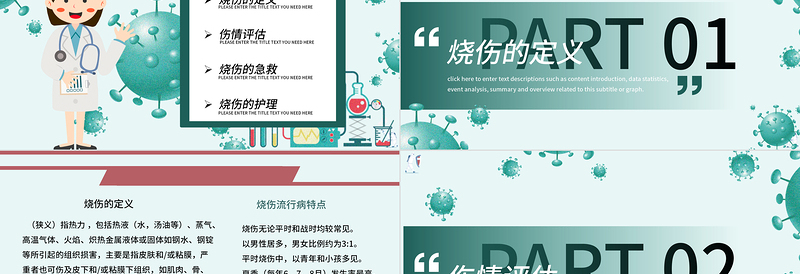 PART 01燒傷的定義click here to enter text descriptions such as content introduction, data statistics, event analysis, summary and overview related to this subtitle or graph.