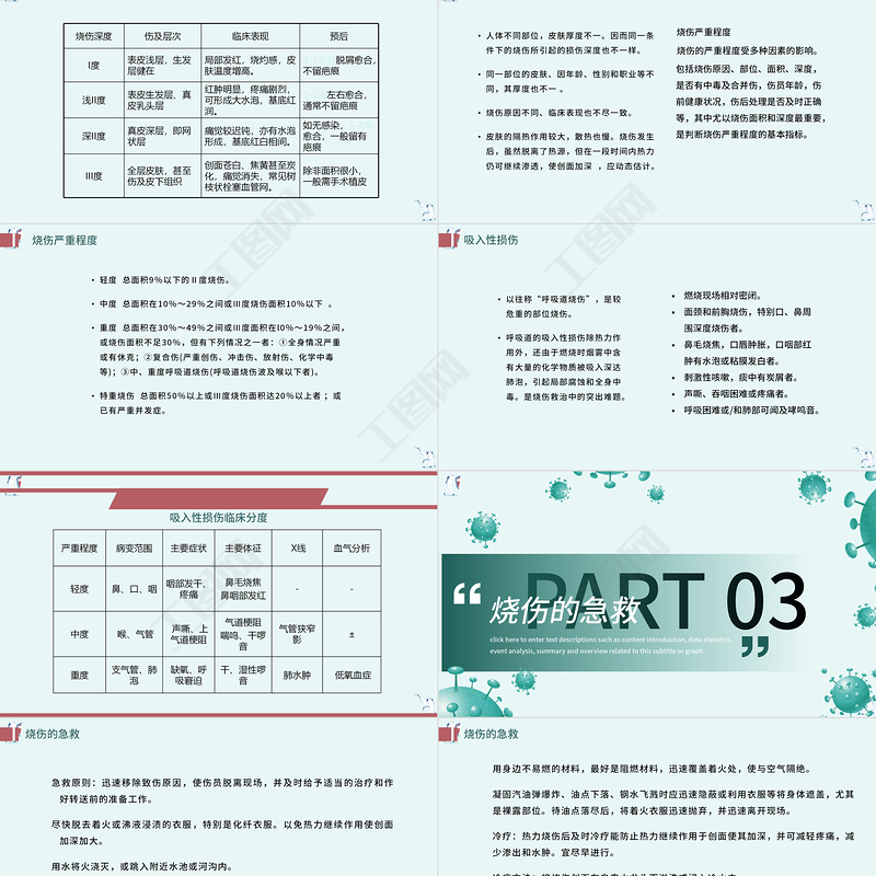 PART 03燒傷的急救click here to enter text descriptions such as content introduction, data statistics, event analysis, summary and overview related to this subtitle or graph.