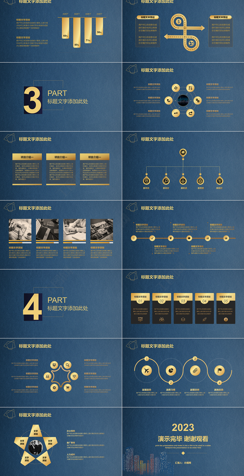 2023工作總結(jié)PPT模板藍金金融科技模板 Array