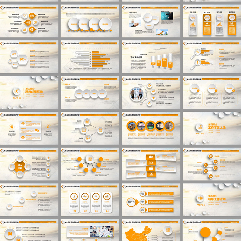 創(chuàng)意橙色微立體工作總結(jié)ppt模板 Array