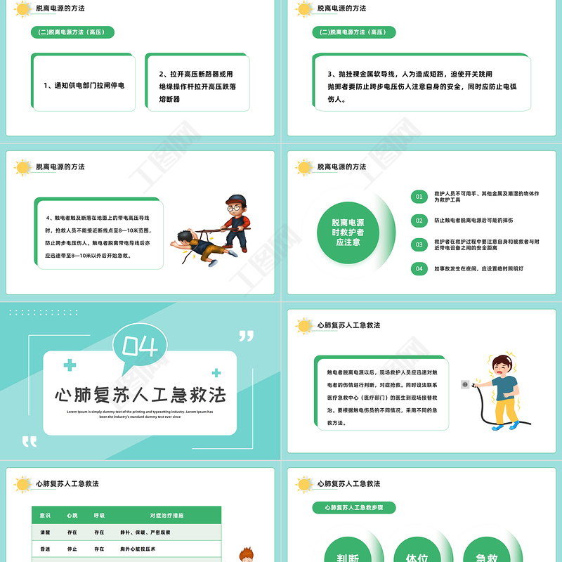 工圖網(wǎng)提供2022觸電急救知識(shí)PPT綠色卡通風(fēng)觸電急救知識(shí)科普培訓(xùn)講座課件模板供會(huì)員免費(fèi)下載。更多精彩黨課PPT素材,盡在工圖網(wǎng)。