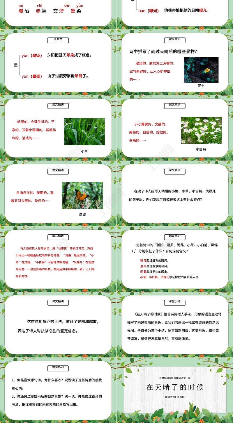 在天晴了的時候人教版部編版四年級語文下冊授課老師:辦圖網(wǎng)