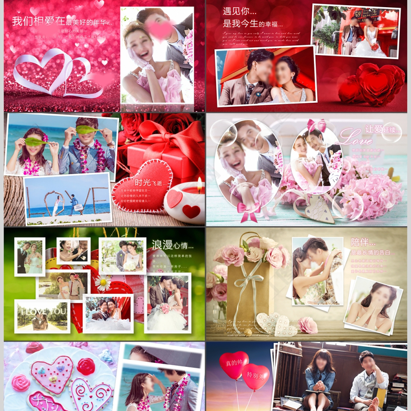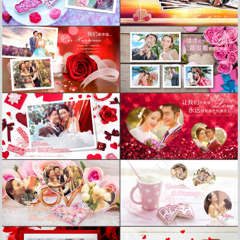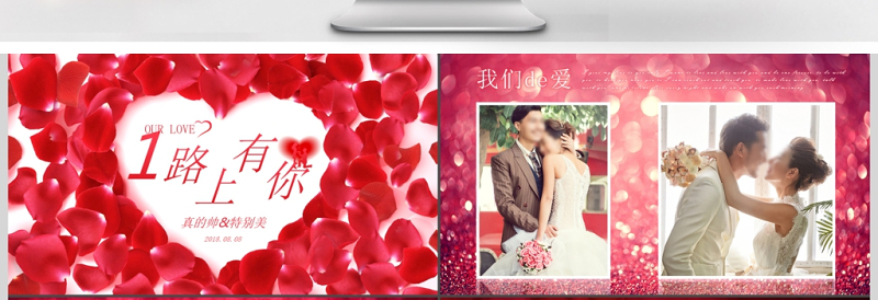 紅色愛心花瓣浪漫溫馨華麗婚禮開場電子相冊ppt Array