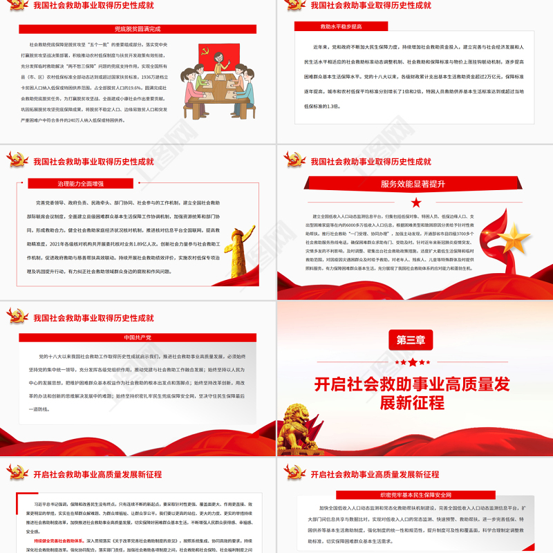 加快推進(jìn)社會(huì)救助事業(yè)高質(zhì)量發(fā)展 PPT紅色黨政風(fēng)黨員干部學(xué)習(xí)教育專題黨課課件模板 Array