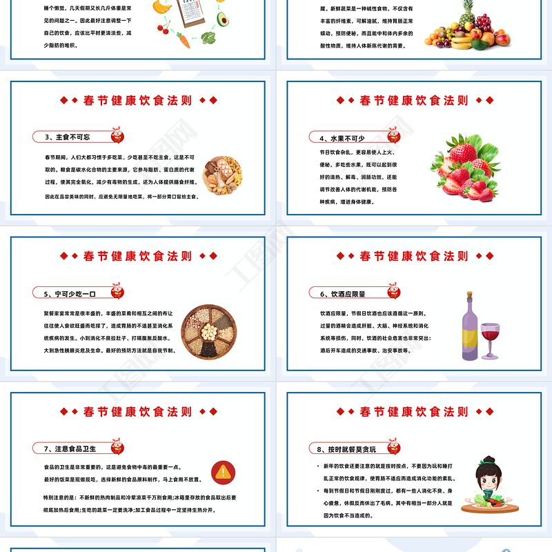 工圖網(wǎng)提供2023春節(jié)健康飲食PPT春節(jié)健康飲食知識(shí)介紹課件模板供會(huì)員免費(fèi)下載。更多精彩黨課PPT素材,盡在工圖網(wǎng)。