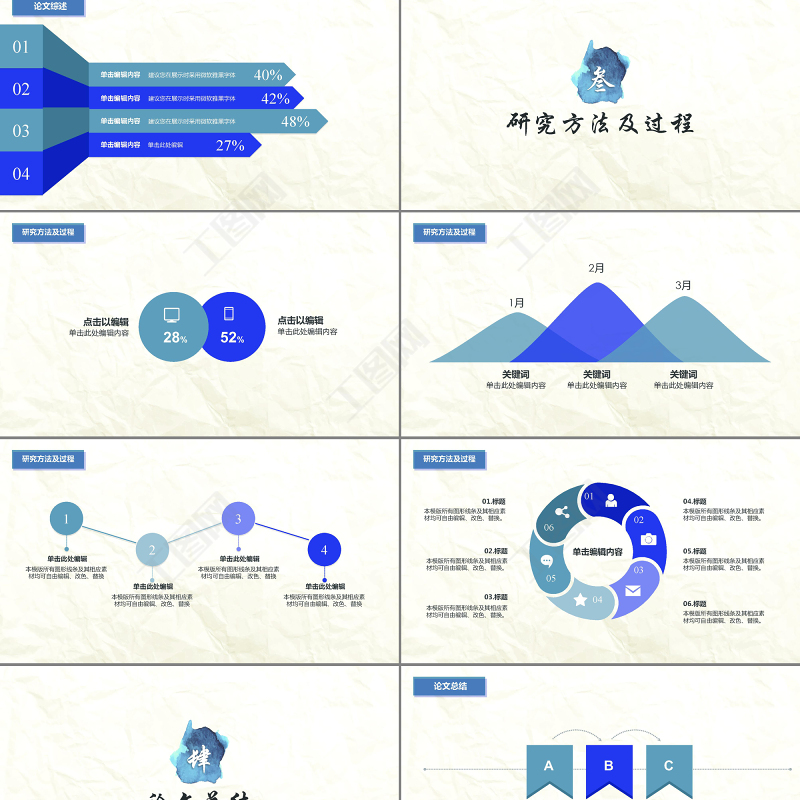 工圖網(wǎng)提供清新典雅潑墨風(fēng)論文答辯PPT模板供會員免費下載。更多精彩黨課PPT素材,盡在工圖網(wǎng)。