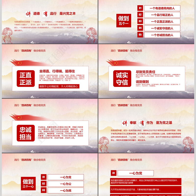 踐行“四講四有”做合格黨員一個有道德高尚的人一個品行端正的人一個正直正派的人一個誠實守信的人一個忠誠擔當?shù)娜?/p>