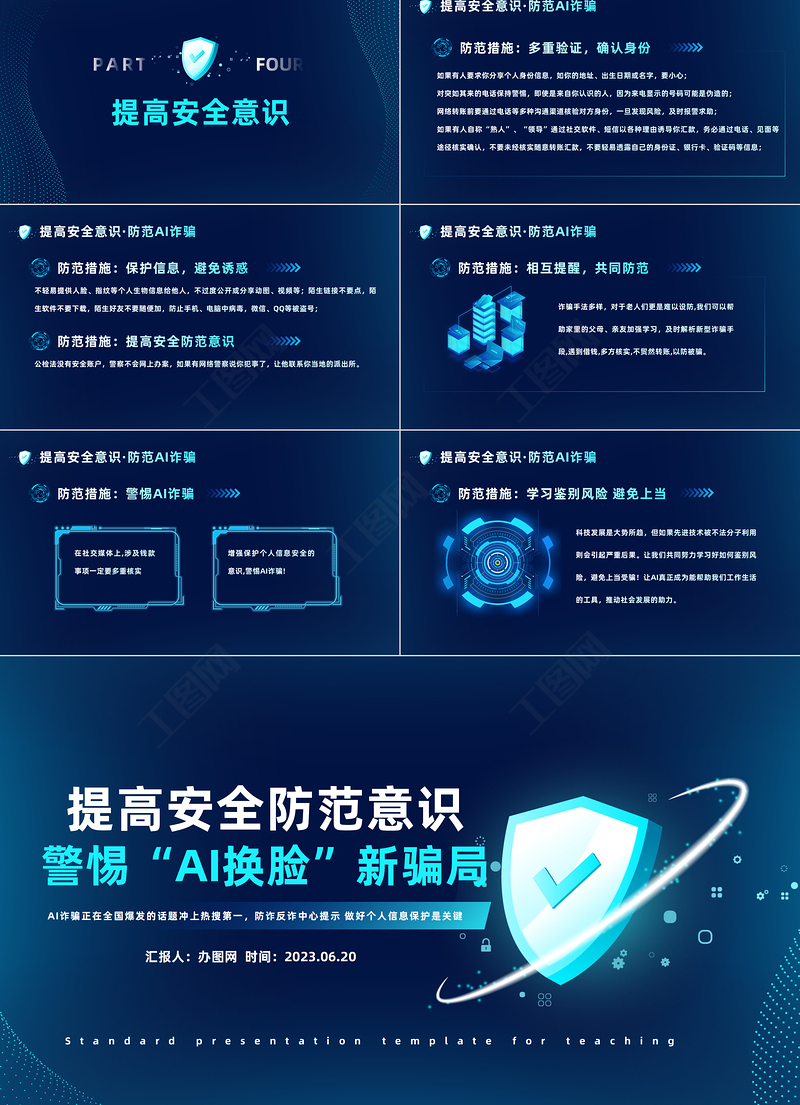 2023提高安全防范意識警惕AI換臉新騙局PPT科技風(fēng)提高安全防范意識課件模板下載 Array