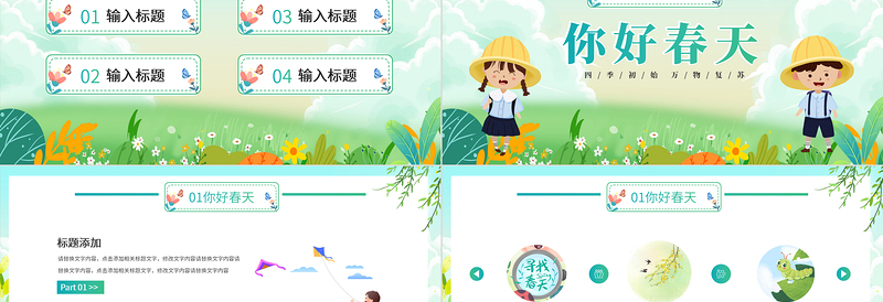 春天你好PPT清新簡潔遇見美好春天課件模板
