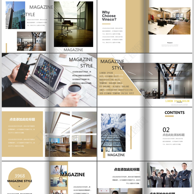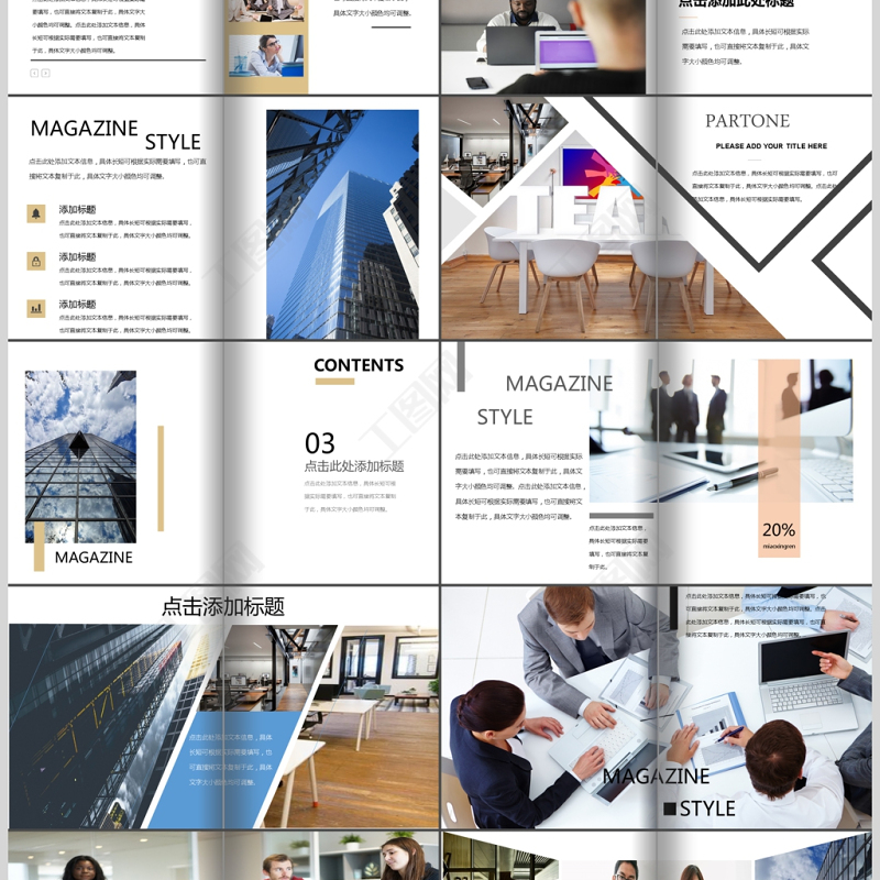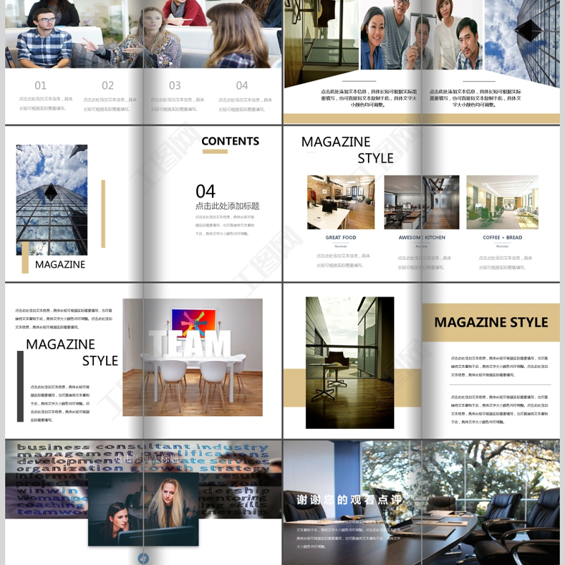 時尚雜志風設計企業(yè)宣傳畫冊PPT通用模板 Array