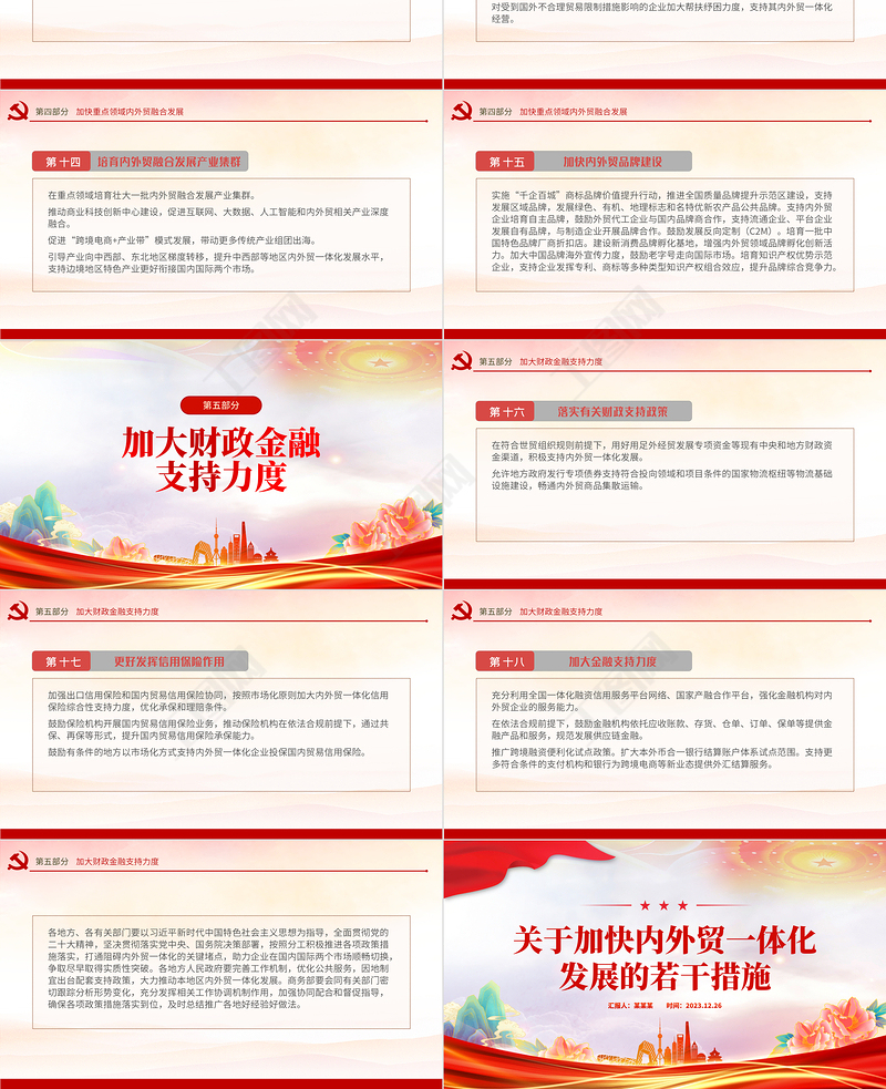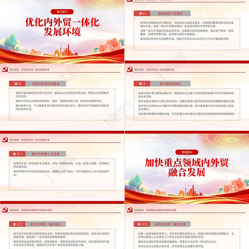 工圖網(wǎng)提供關于加快內(nèi)外貿(mào)一體化發(fā)展的若干措施PPT精美簡潔高質(zhì)量發(fā)展專題課件供會員免費下載。更多精彩黨課PPT素材,盡在工圖網(wǎng)。