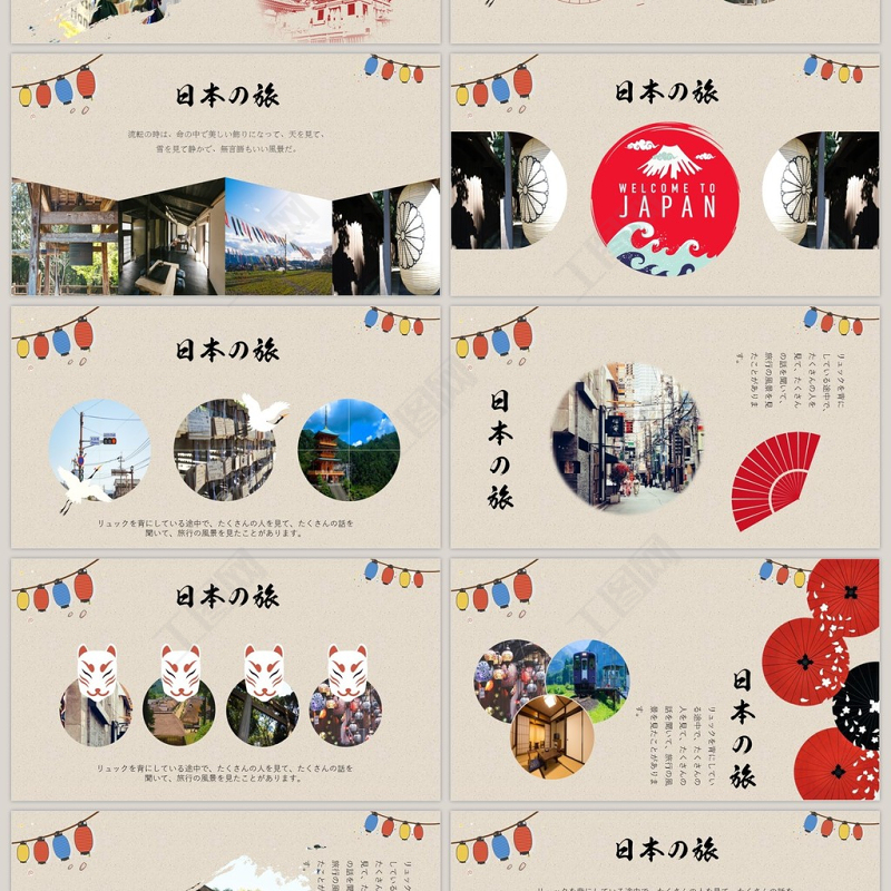 工圖網(wǎng)提供日本旅游風(fēng)光文藝復(fù)古創(chuàng)意相冊(cè)PPT模板供會(huì)員免費(fèi)下載。更多精彩黨課PPT素材,盡在工圖網(wǎng)。