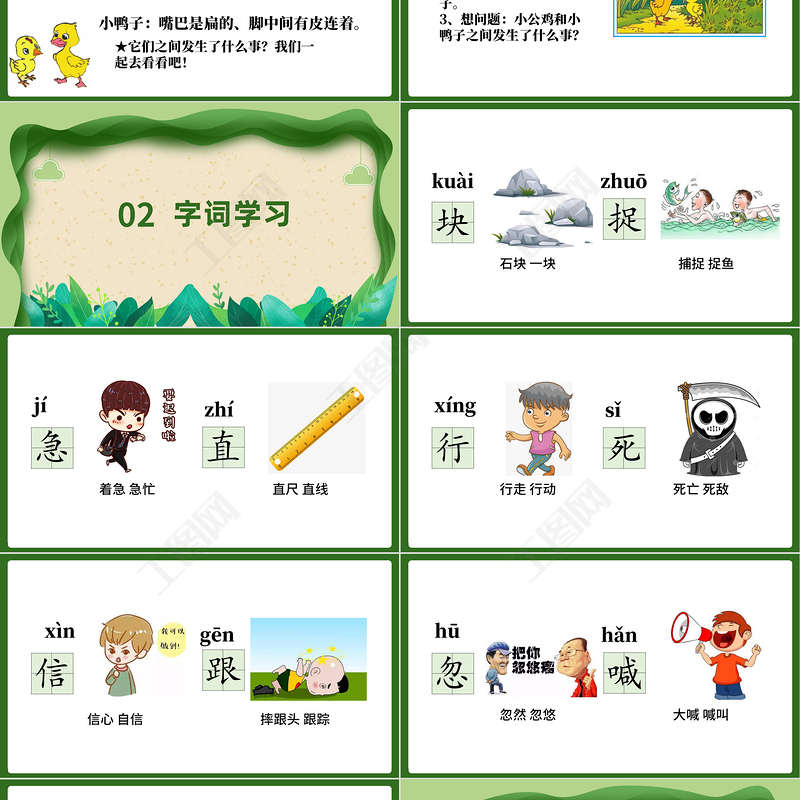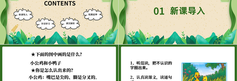 2022小公雞和小鴨子PPT綠色剪紙風(fēng)課文第5課小學(xué)一年級(jí)語(yǔ)文下冊(cè)人教版教學(xué)課件 Array