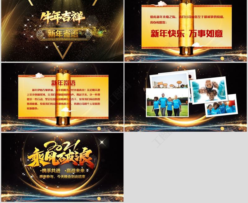 回顧2020年BACK IN 2020一個成長的年度A GROWING YEAR展望2021年OUTLOOK 2021我們肩負重任We have a heavy responsibility我們拼搏進取We?work hard enterprising我們攜手共進 共贏牛年所有文字可修改編輯/效果不變