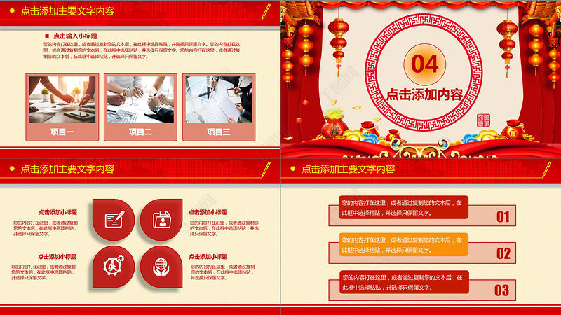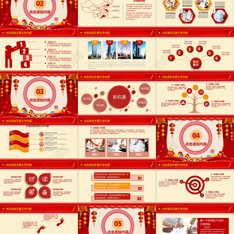 喜慶中國紅燈籠剪紙年會新年年會總結(jié)企業(yè)公司員工總結(jié)匯報(bào)工作計(jì)劃開門紅演示PPTPPT模板 Array