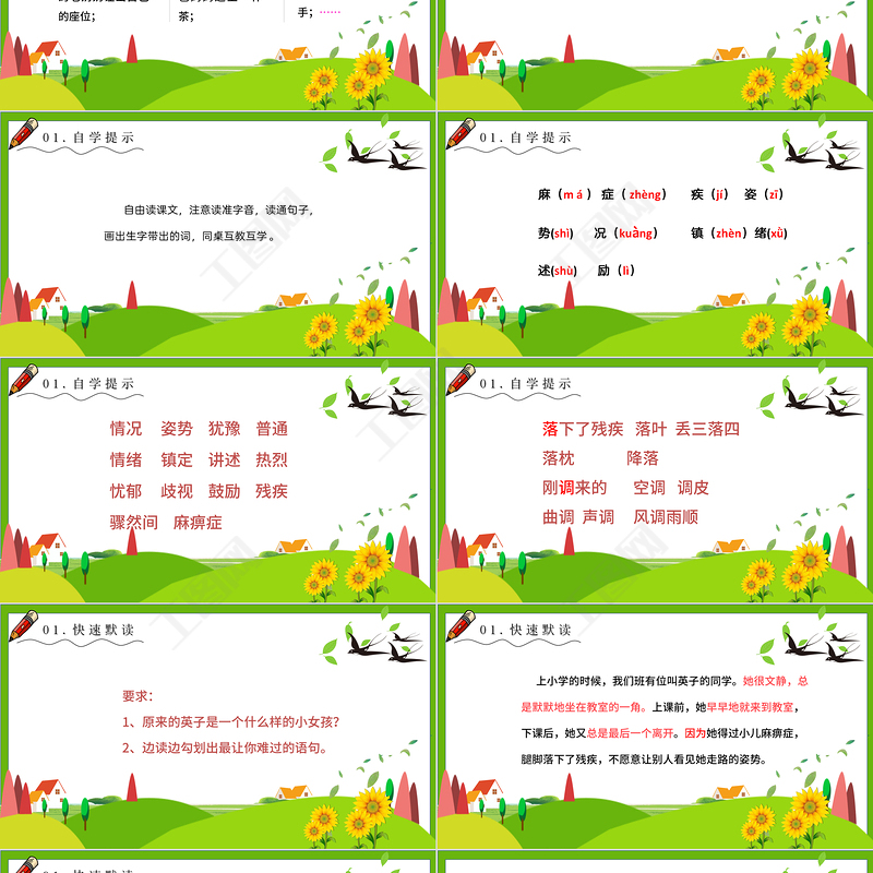 01.自學提示麻(m á ) 癥( zhèng) 疾(jí) 姿(zī) 勢(shì) 況(kuàng) 鎮(zhèn)(zhèn)緒(xǜ) 述(shù) 勵(lì)