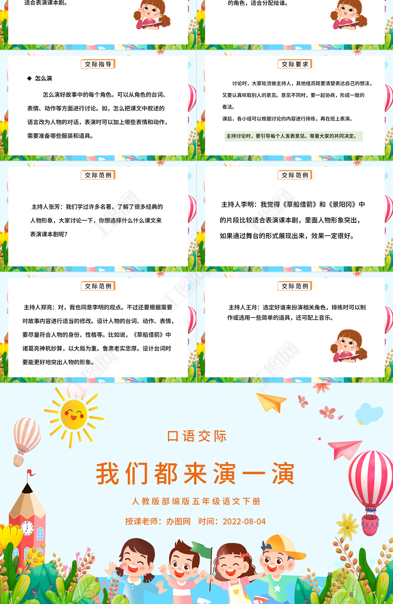 人教版部編版五年級(jí)語(yǔ)文下冊(cè)我們都來(lái)演一演授課老師:辦圖網(wǎng) 時(shí)間:2022-08-04口語(yǔ)交際