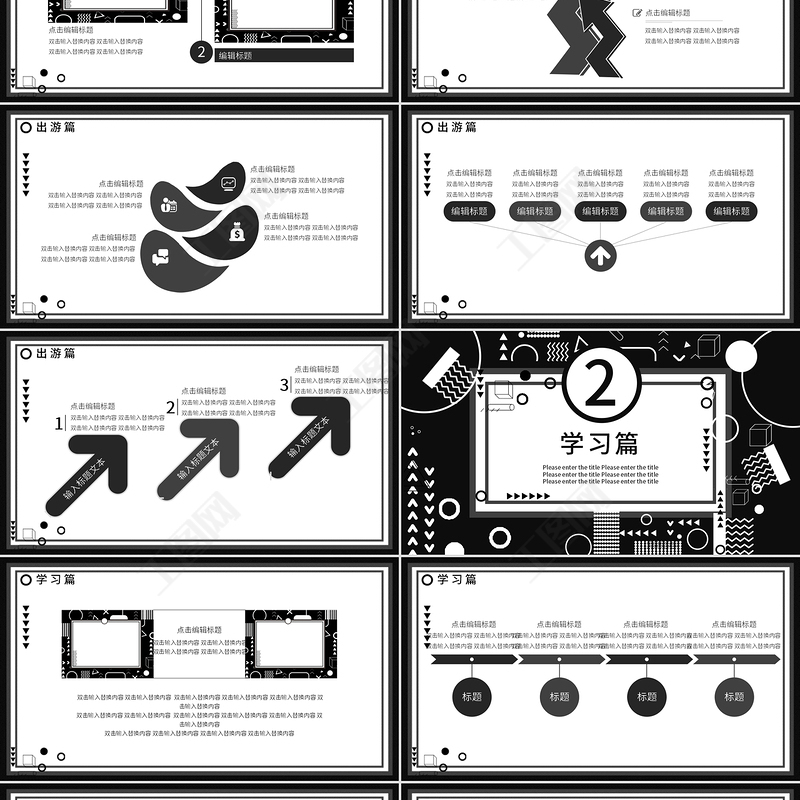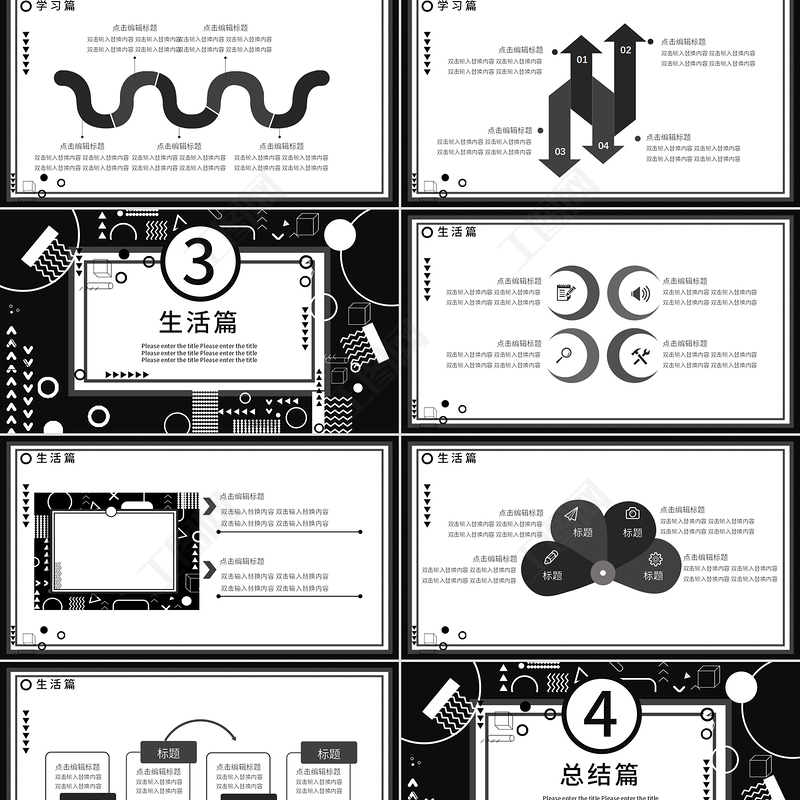 工圖網(wǎng)提供11黑白孟菲斯幾何通用PPT模板供會員免費下載。更多精彩黨課PPT素材,盡在工圖網(wǎng)。