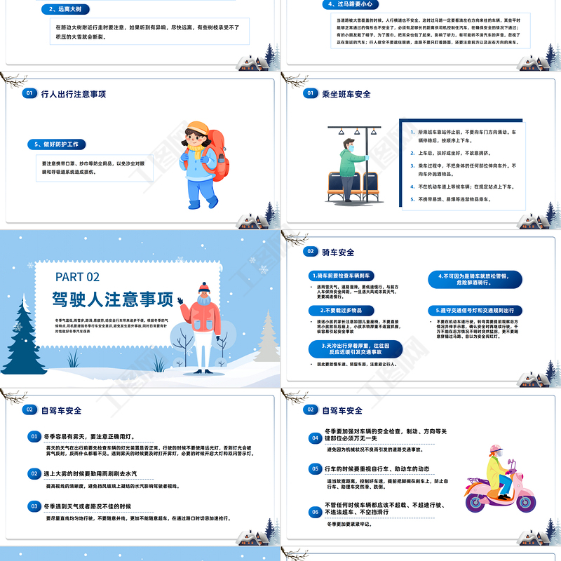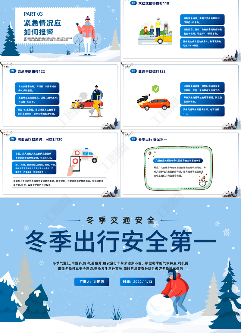 工圖網(wǎng)提供2022冬季出行安全第一PPT藍色卡通風冬季交通安全主題班會課件模板供會員免費下載。更多精彩黨課PPT素材,盡在工圖網(wǎng)。