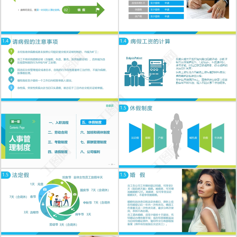 一、入職流程二、勞動合同三、考勤制度四、請假制度五、休假制度七、薪酬管理制度八、公司福利六、加班和調(diào)休制度Contents Page目錄頁人事管理制度