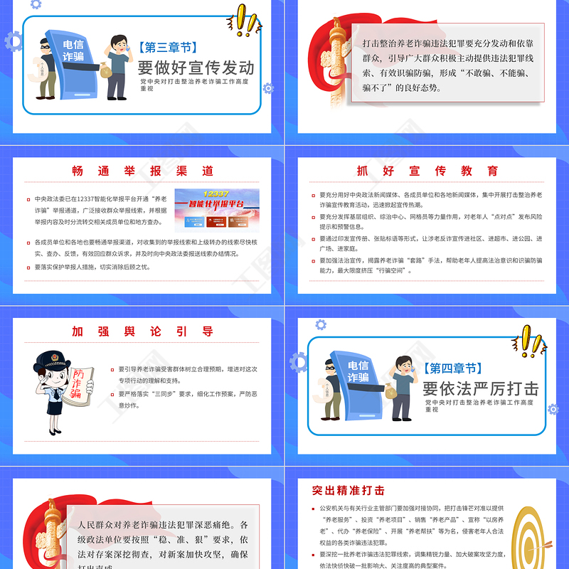 工圖網(wǎng)提供打擊政治養(yǎng)老詐騙專項(xiàng)行動(dòng)PPT紅色黨政風(fēng)為老年人安享晚年?duì)I造良好社會(huì)環(huán)境專題課件模板供會(huì)員免費(fèi)下載。更多精彩黨課PPT素材,盡在工圖網(wǎng)。