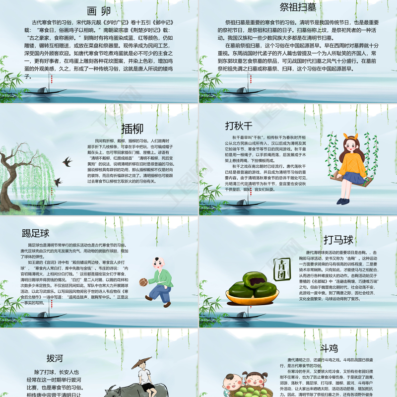 清新古風(fēng)中國傳統(tǒng)文化節(jié)寒食節(jié)節(jié)日介紹PPT模板 Array