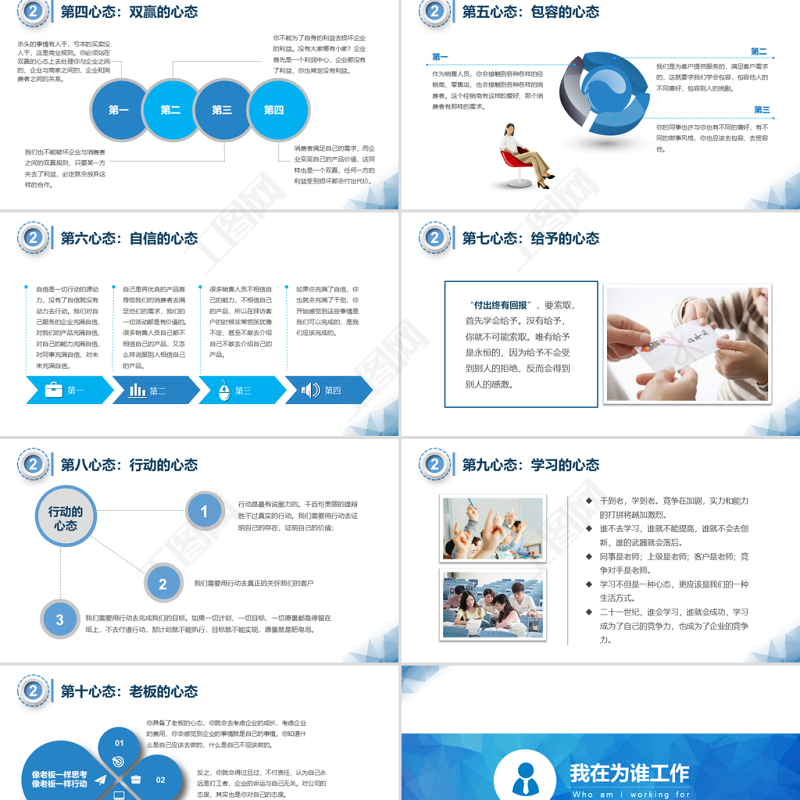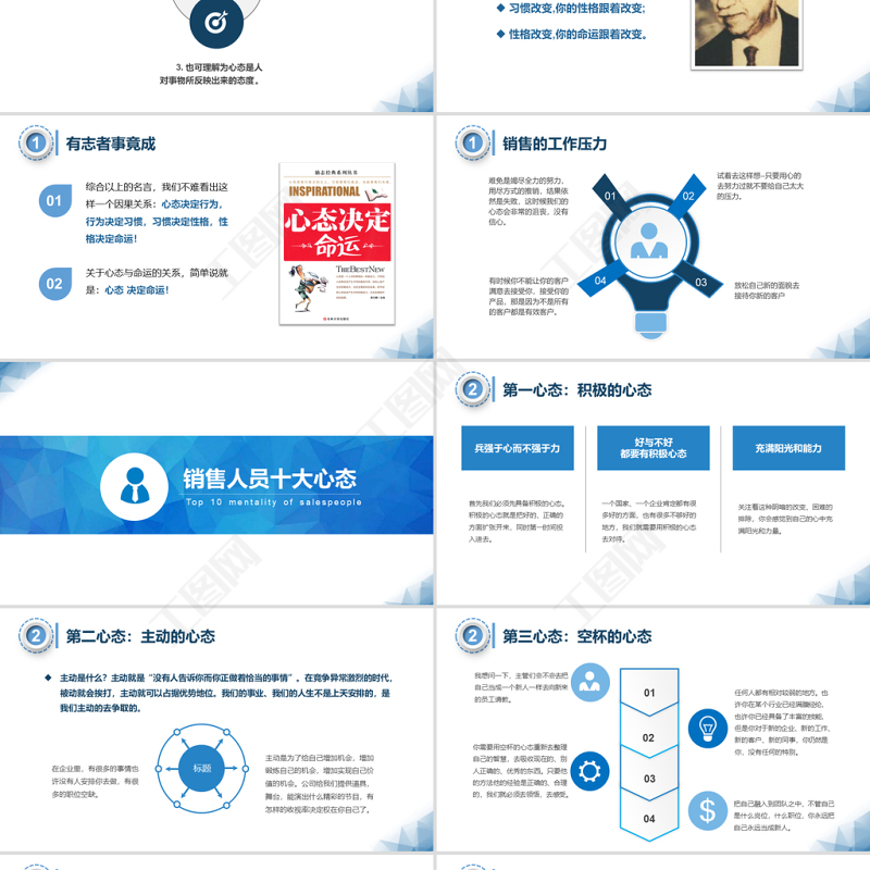 工圖網(wǎng)提供藍(lán)色商務(wù)銷售心態(tài)培訓(xùn)課培訓(xùn)PPT模板供會(huì)員免費(fèi)下載。更多精彩黨課PPT素材,盡在工圖網(wǎng)。