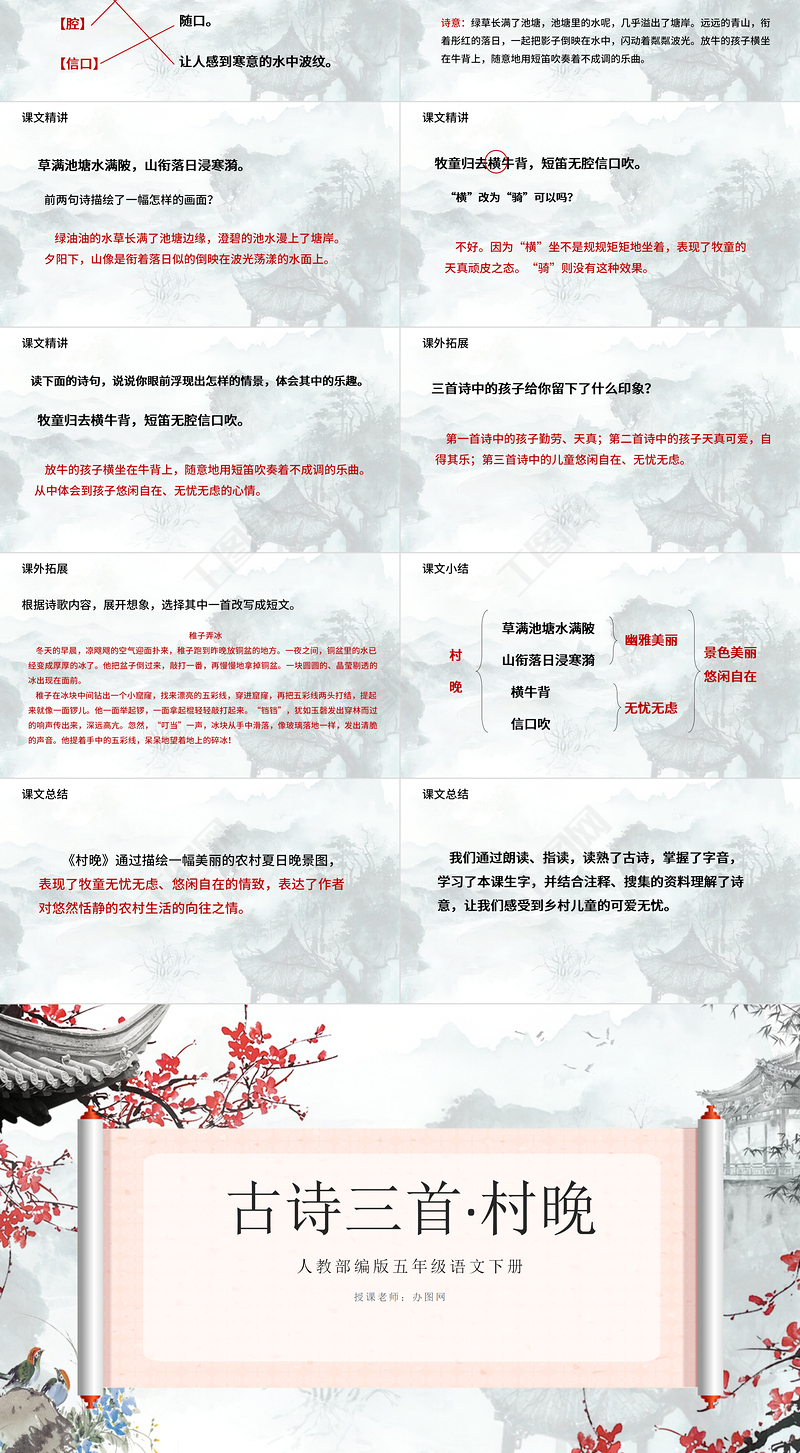 古詩三首·村晚人教部編版五年級語文下冊授課老師:辦圖網(wǎng)