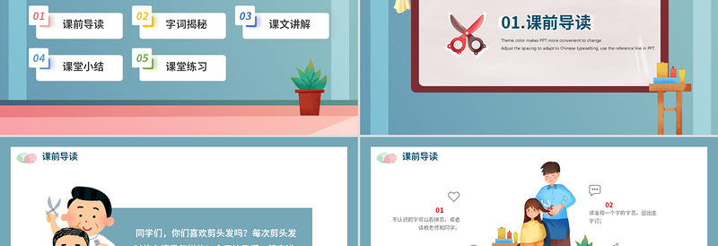 01.課前導(dǎo)讀Theme color makes PPT more convenie nt to change. Adjust the spacing to adapt to Chinese typesetting, use the reference line in PPT.