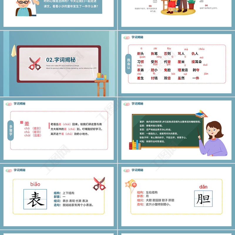 02.字詞揭秘Theme color makes PPT more convenie nt to change. Adjust the spacing to adapt to Chinese typesetting, use the reference line in PPT.