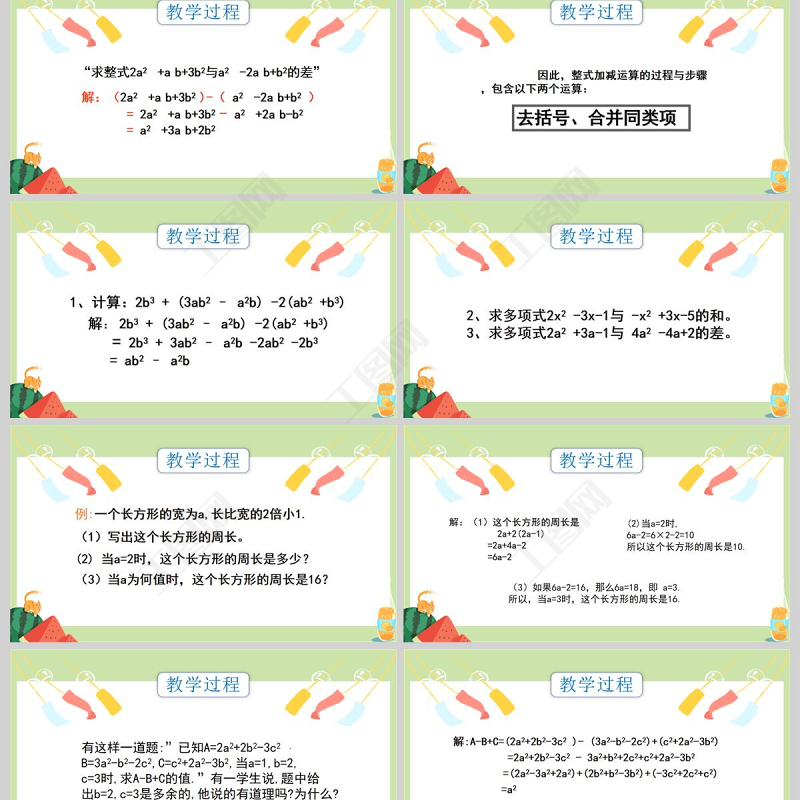 工圖網(wǎng)提供 七年級數(shù)學(xué)整式的加減課件PPT模板供會員免費下載。更多精彩黨課PPT素材,盡在工圖網(wǎng)。