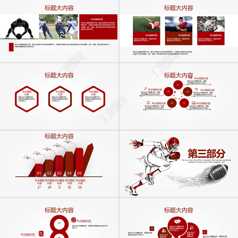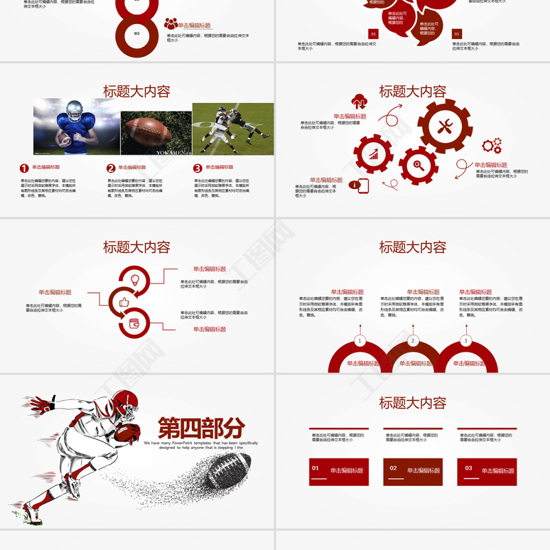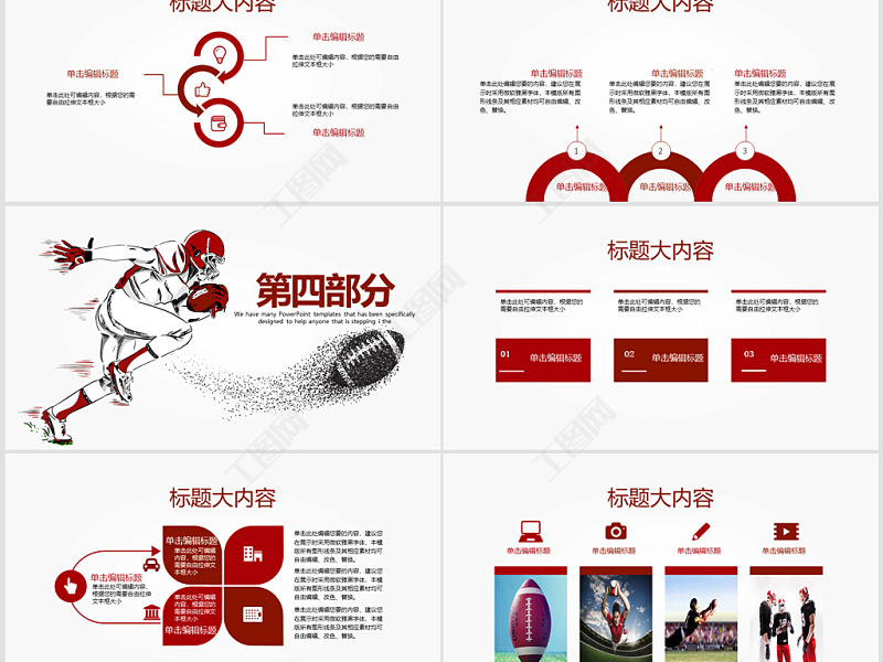 工圖網(wǎng)提供原創(chuàng)橄欖球運動動態(tài)PPT模板封含PS-版權(quán)可商用供會員免費下載。更多精彩黨課PPT素材,盡在工圖網(wǎng)。