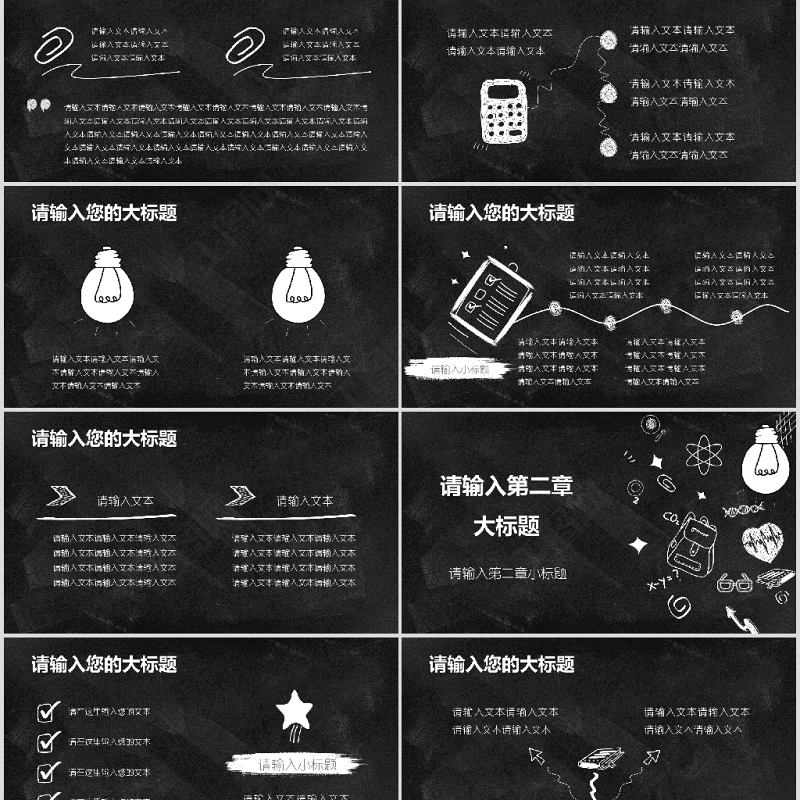 手繪小清新黑板學(xué)校教育教學(xué)ppt模板 Array