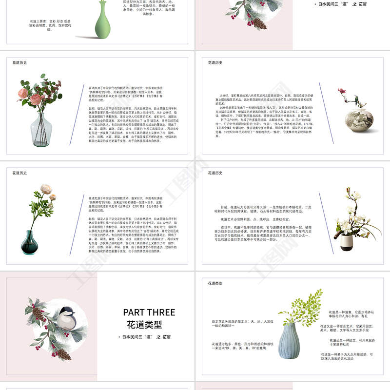 工圖網(wǎng)提供日式插花日本三道之花道介紹PPT模板供會員免費(fèi)下載。更多精彩黨課PPT素材,盡在工圖網(wǎng)。