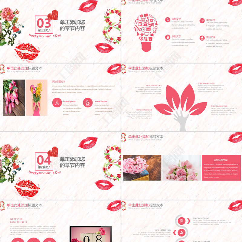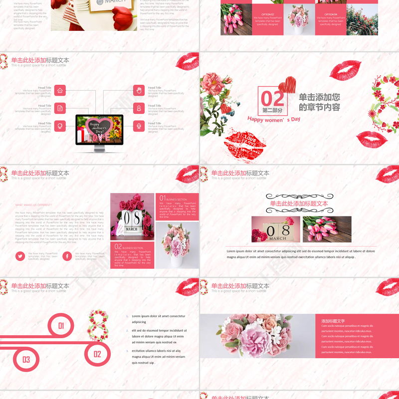 > 營(yíng)銷(xiāo)策劃PPT > 小清新紅唇三八節(jié)婦女節(jié)動(dòng)態(tài)PPT模板.PPTX 【圖片、文字、動(dòng)畫(huà)均可編輯】