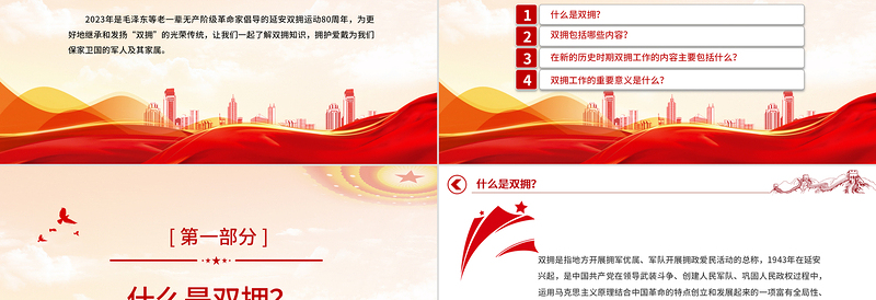 2023擁軍優(yōu)屬擁政愛民PPT紅色精美紀(jì)念延安雙擁運(yùn)動(dòng)80周年專題黨課課件