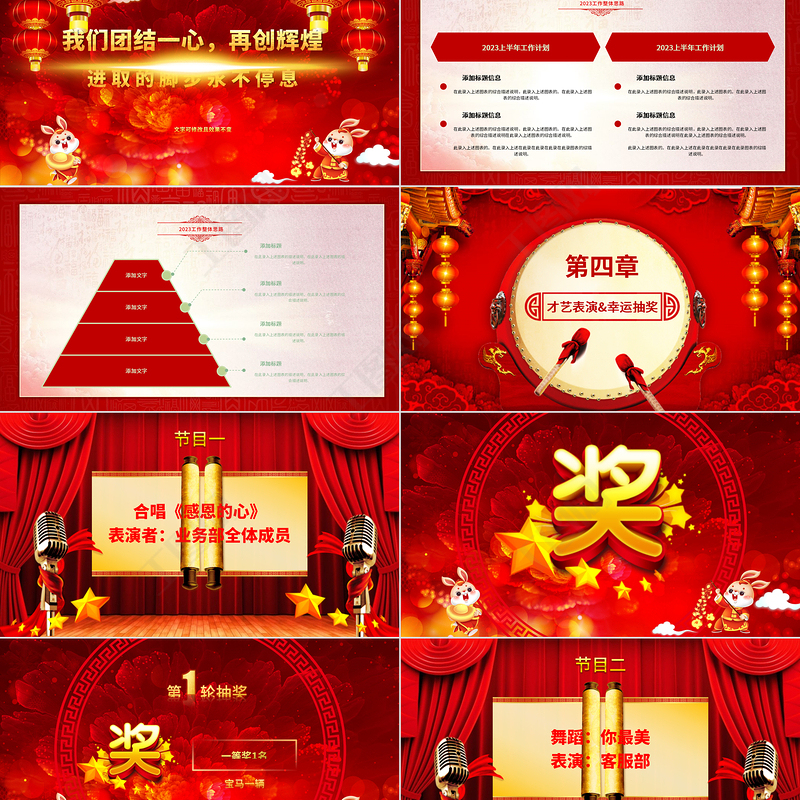 2023福兔迎春PPT吉祥喜慶中國紅兔年大吉企業(yè)年會頒獎典禮新春聯(lián)歡會員工答謝會模板