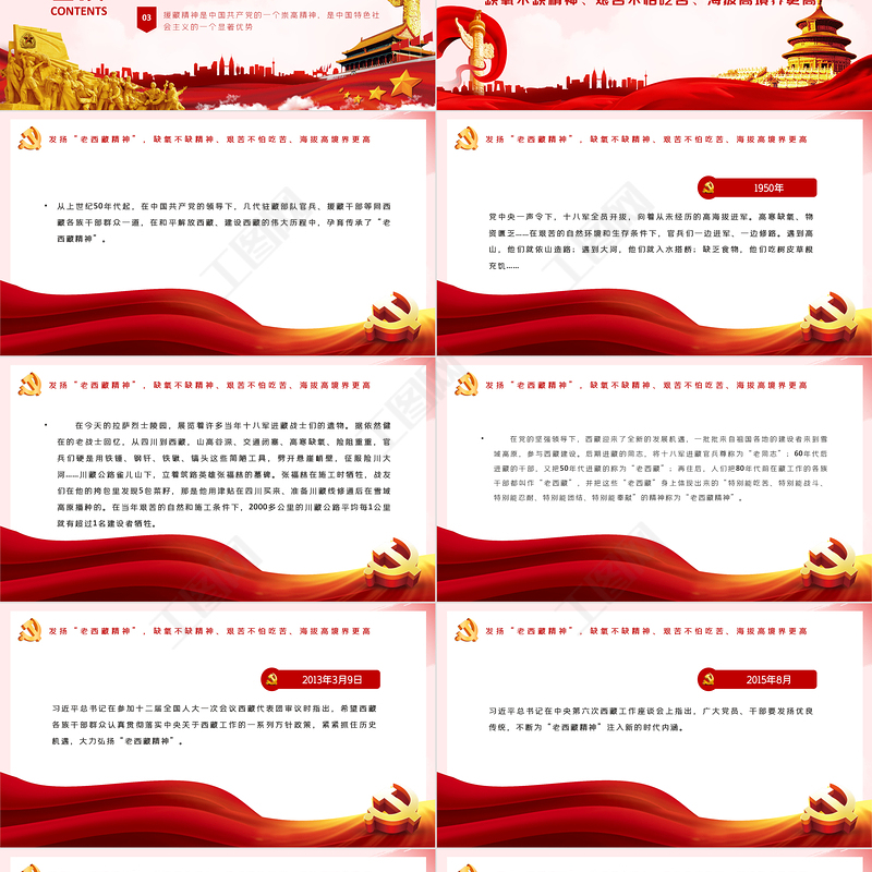 工圖網(wǎng)提供弘揚“老西藏精神”PPT紅色大氣缺氧不缺精神艱苦不怕吃苦海拔高境界更高譜寫雪域高原新篇章黨課課件供會員免費下載。更多精彩黨課PPT素材,盡在工圖網(wǎng)。