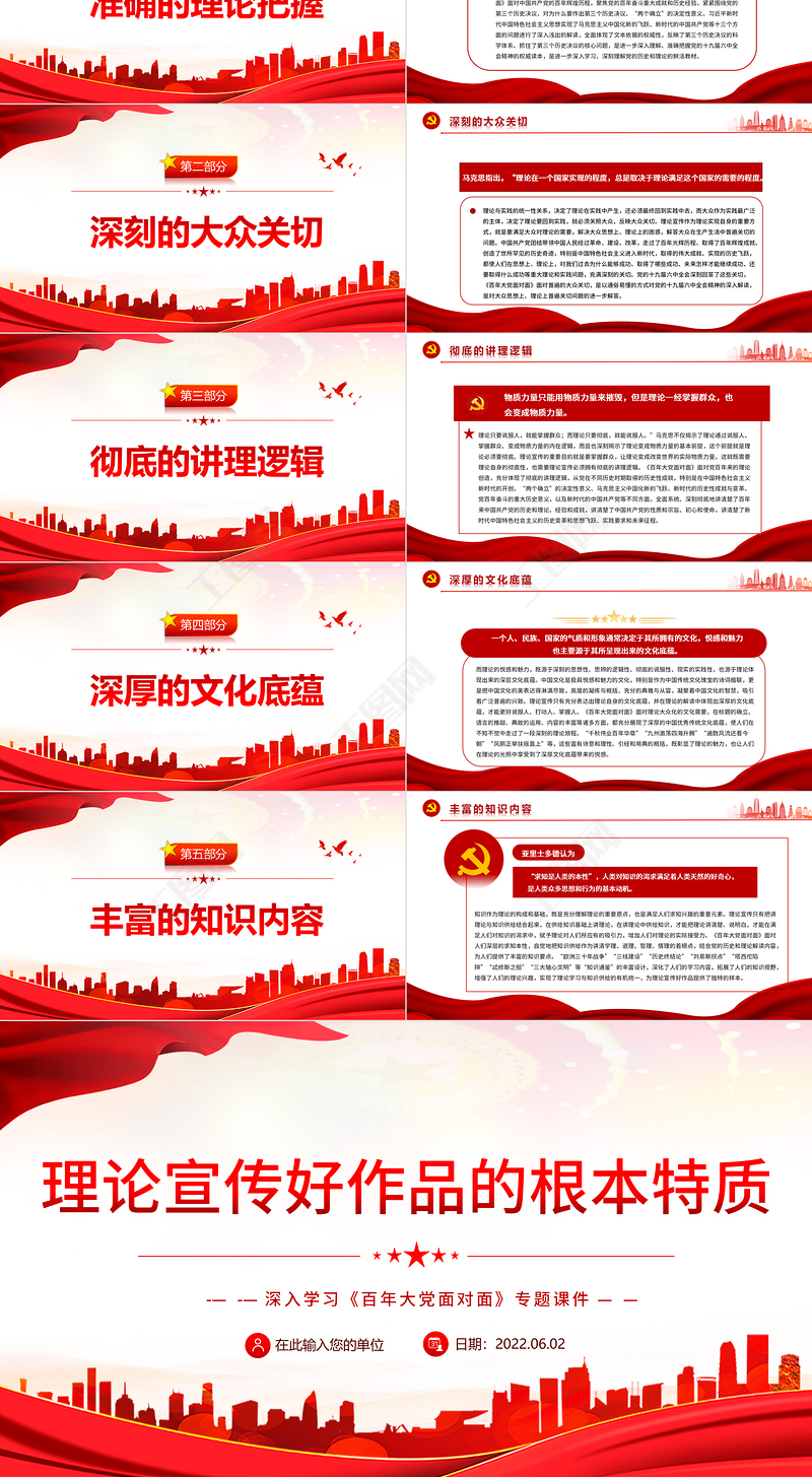 首頁 > PPT模板 > 黨課PPT模板 > 理論宣傳好作品的根本特質PPT深入學習《百年大黨面對面》專題黨課課件模板.PPTX 【圖片、文字、動畫均可編輯】