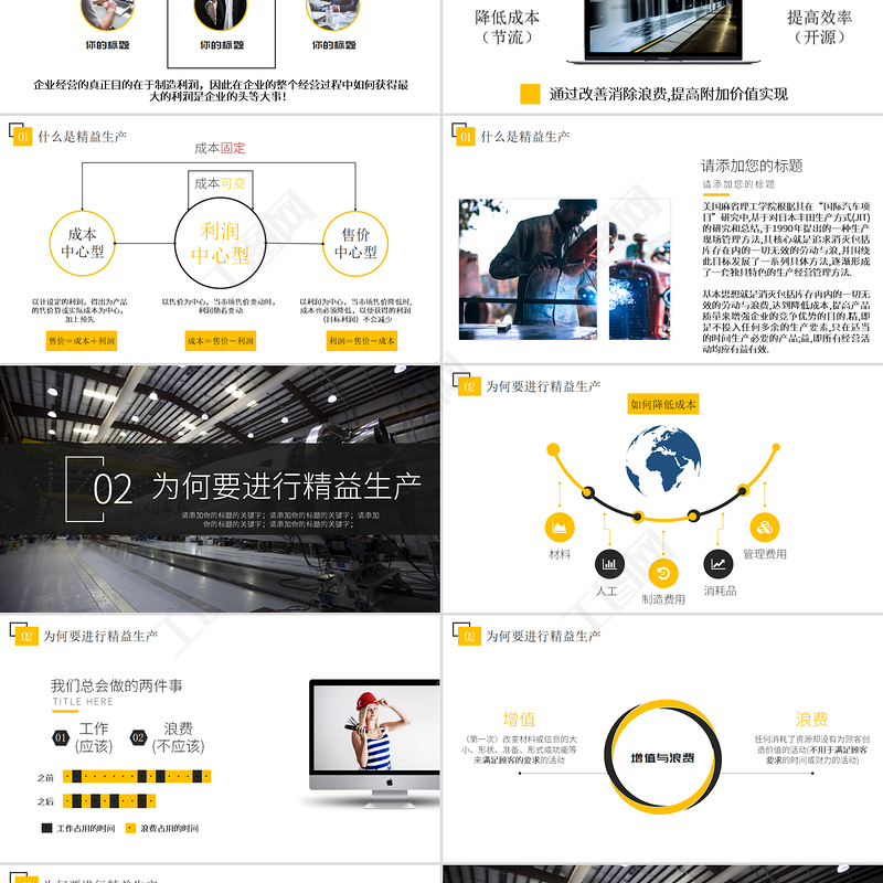 Business精益生產(chǎn)的意義 ready·精益生產(chǎn)是一套系統(tǒng)的以創(chuàng)造價值為目標的方法,這套方法通過減少浪費以實現(xiàn)提高速度、降低成本的目的. ·精益生產(chǎn)是一種制造哲學(xué),它通過減少浪費來縮短從客戶下單到交付之間的時間. 請?zhí)砑幽臉祟}