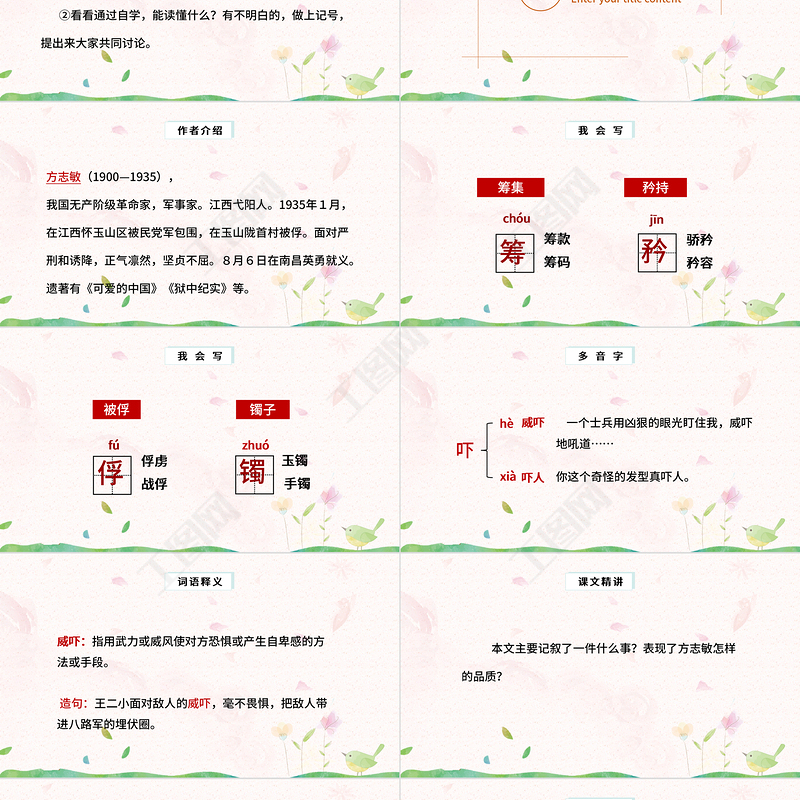 課堂練習(xí)1.課外閱讀《可愛(ài)的中國(guó)》。 2.收集并閱讀方志敏的其他文章。三、課后作業(yè)