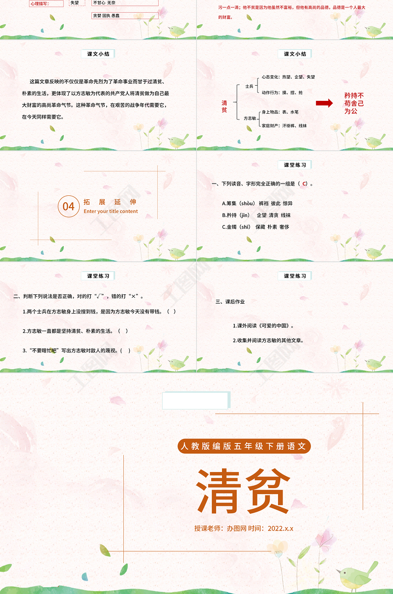 清貧人教版編版五年級(jí)下冊(cè)語(yǔ)文授課老師:辦圖網(wǎng) 時(shí)間:2022.x.x