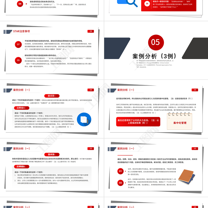 STAR注意事項-04不揣測和誘導被訪談者說的內(nèi)容,避免探究那些會限制被訪談者思路的領域。訪談結(jié)束,應向被訪者致謝,接著開始整理訪談記錄,撰寫訪談紀要,詳細記錄所獲得的信息,有的甚至需要保留被訪者的原話。被訪者的外在形象、談吐風格以至于他的工作場所的特點有時也需要被記下。訪談紀要則是我們后續(xù)方案設計重要的“原材料”之一。07避免使用引導型問題或直接跳向事件結(jié)論。“這種情況您嘗試去說服他嗎?““關(guān)于用人方面您能談談嗎?”“您經(jīng)常培訓下屬嗎?” 對那些優(yōu)秀的管理者而言,當問他成功事例時,往往會脫口而出。 因為一個成功業(yè)績會凝結(jié)他的心血,對他的印象是極深刻的,而引導性問題會把被訪談人帶入理論探討,或者一般性的敘述中。05