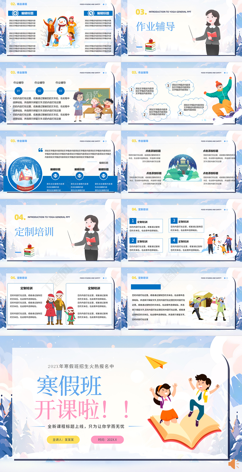 寒假班開課啦PPT創(chuàng)意清新招生計劃課件模板