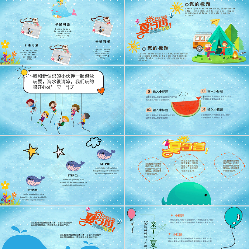 夏令營兒童卡通風(fēng)課件PPT模板