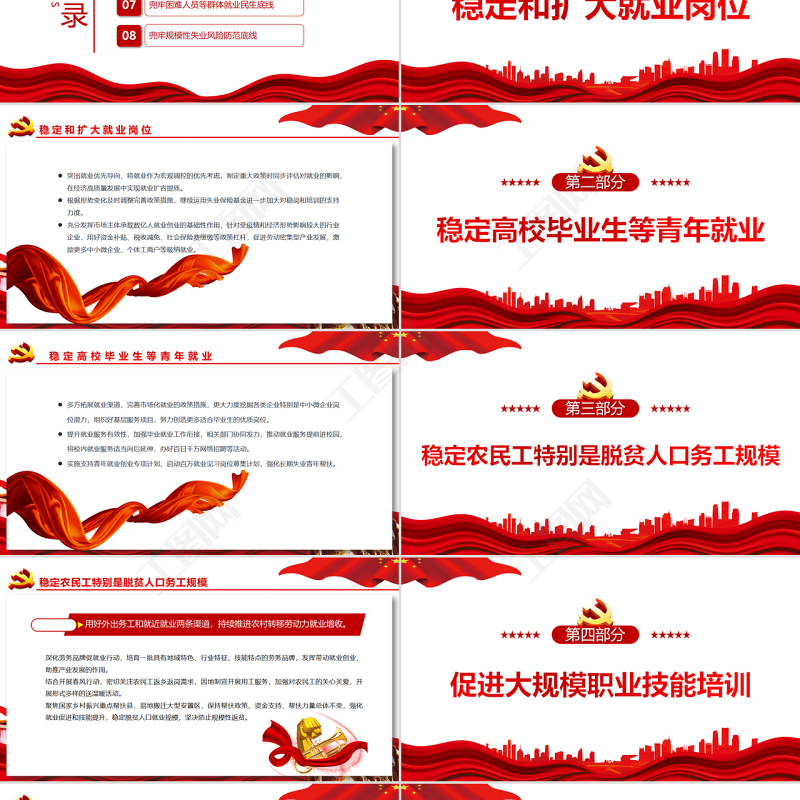 八大舉措穩(wěn)就業(yè)PPT黨政風(fēng)黨員干部學(xué)習(xí)教育專題黨課課件模板 Array